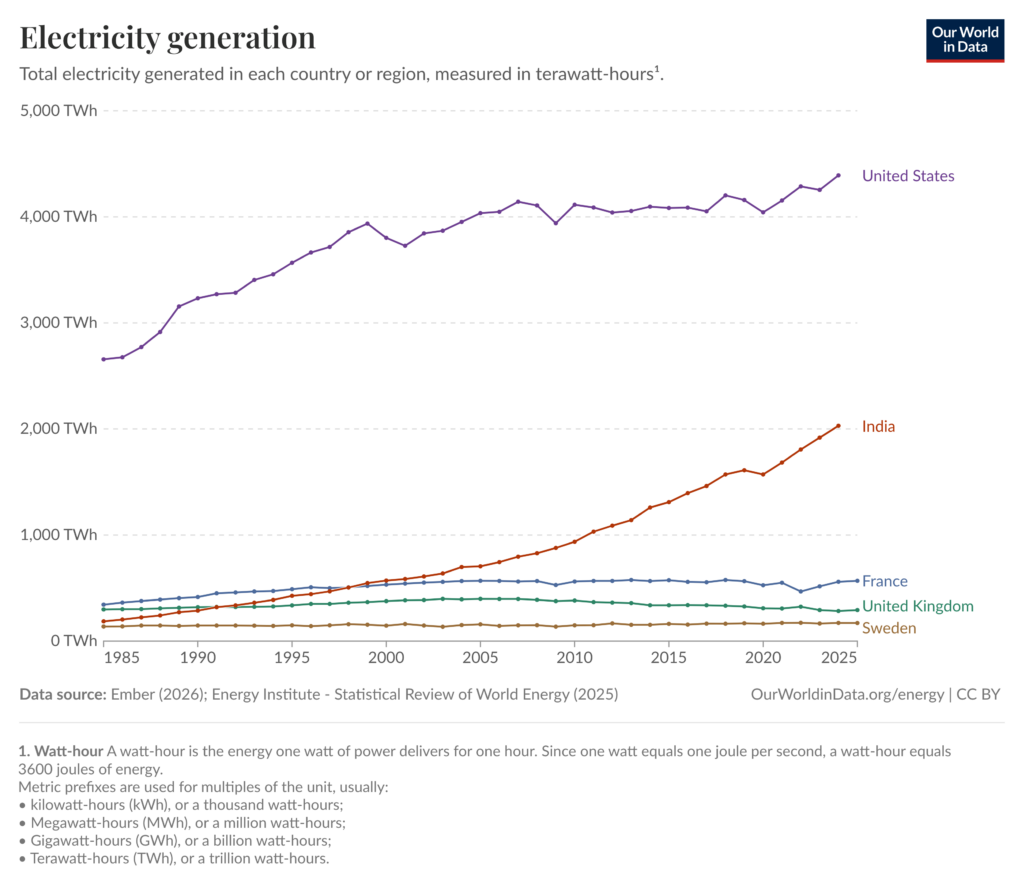 Put into context, covering that growth would mean building dozens of large new power plants in less than a decade, or massively accelerating the expansion of wind, solar, nuclear, and gas generation, along with transmission networks capable of moving that electricity to where it is needed. The problem is no longer simply how much energy is generated, but whether infrastructure can grow fast enough to keep pace with demand.