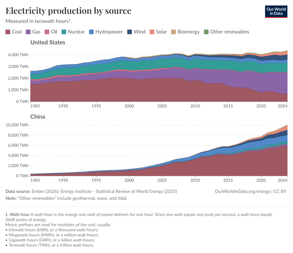 That helps explain why the energy debate in Washington has been reshaped. It is no longer only about gasoline prices or daily oil output. It is about technological competitiveness — and that competition has a specific rival: China.